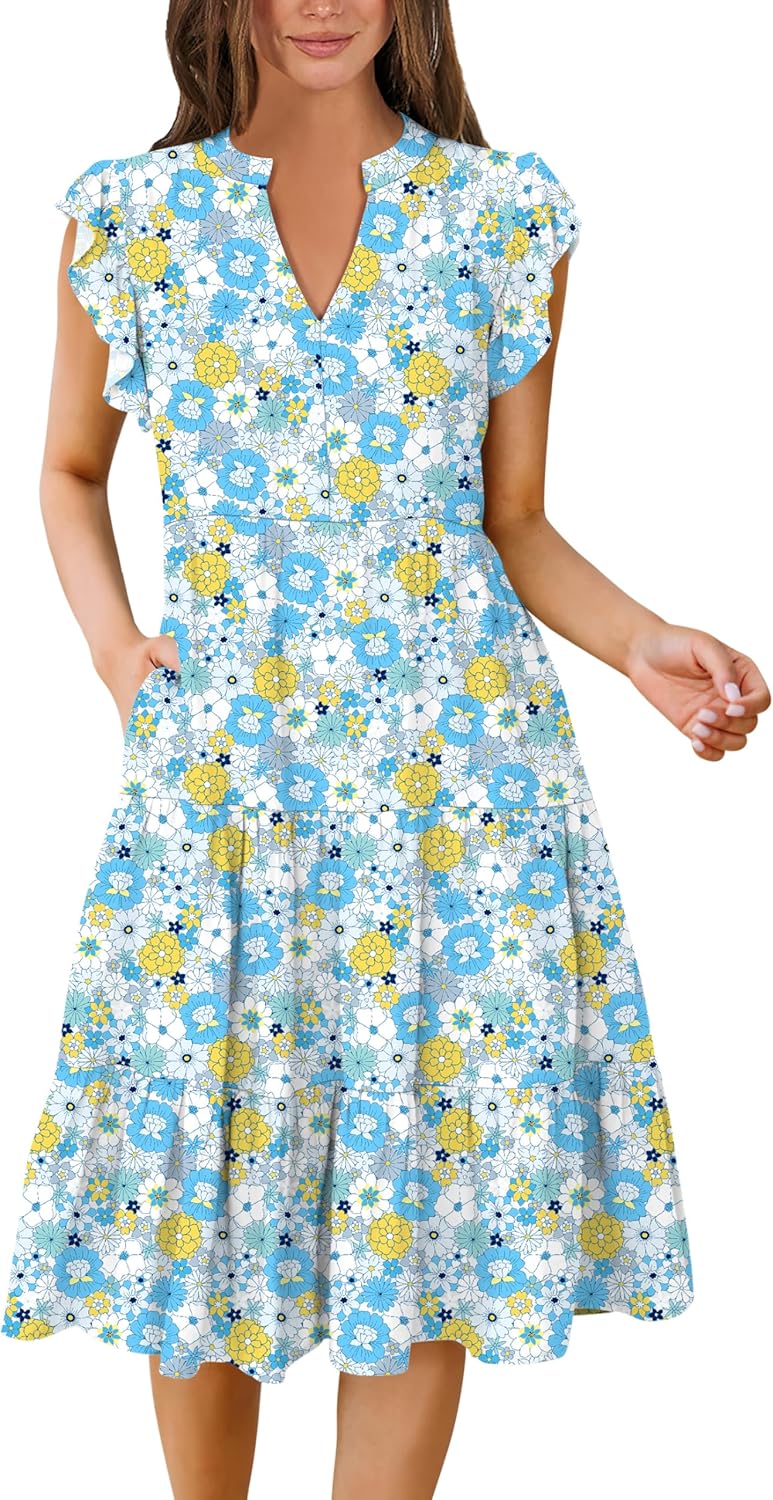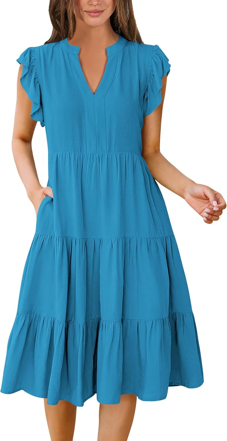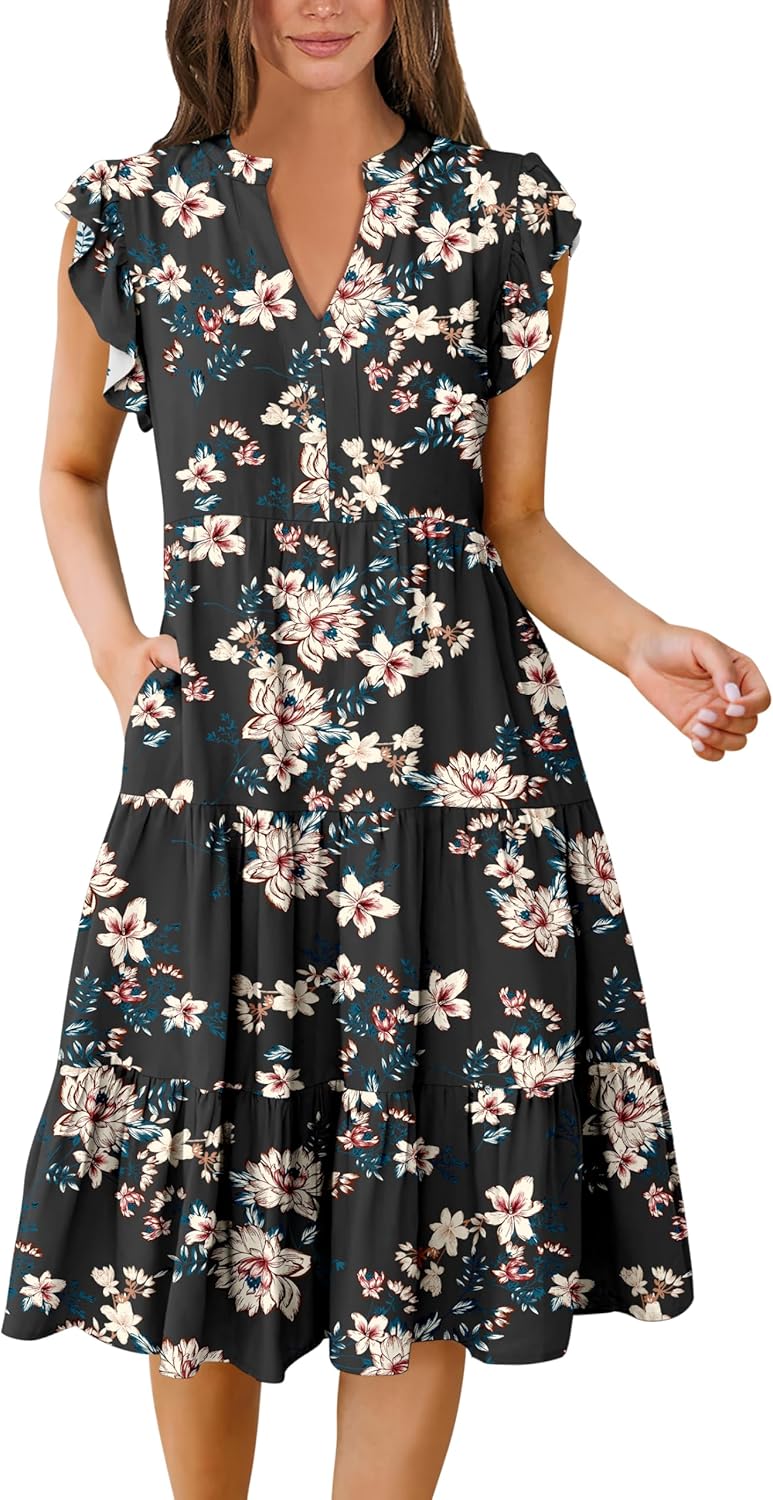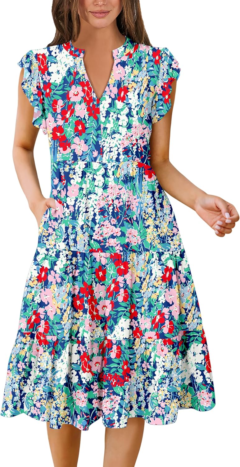 - Features - Adorned with charming ruffled sleeves, V neck, pleated, solid color, and floral printed tiered boho midi dress, this summer dress is a perfect choice for daily wear, school, work, office, party, casual outings, beach, travel.