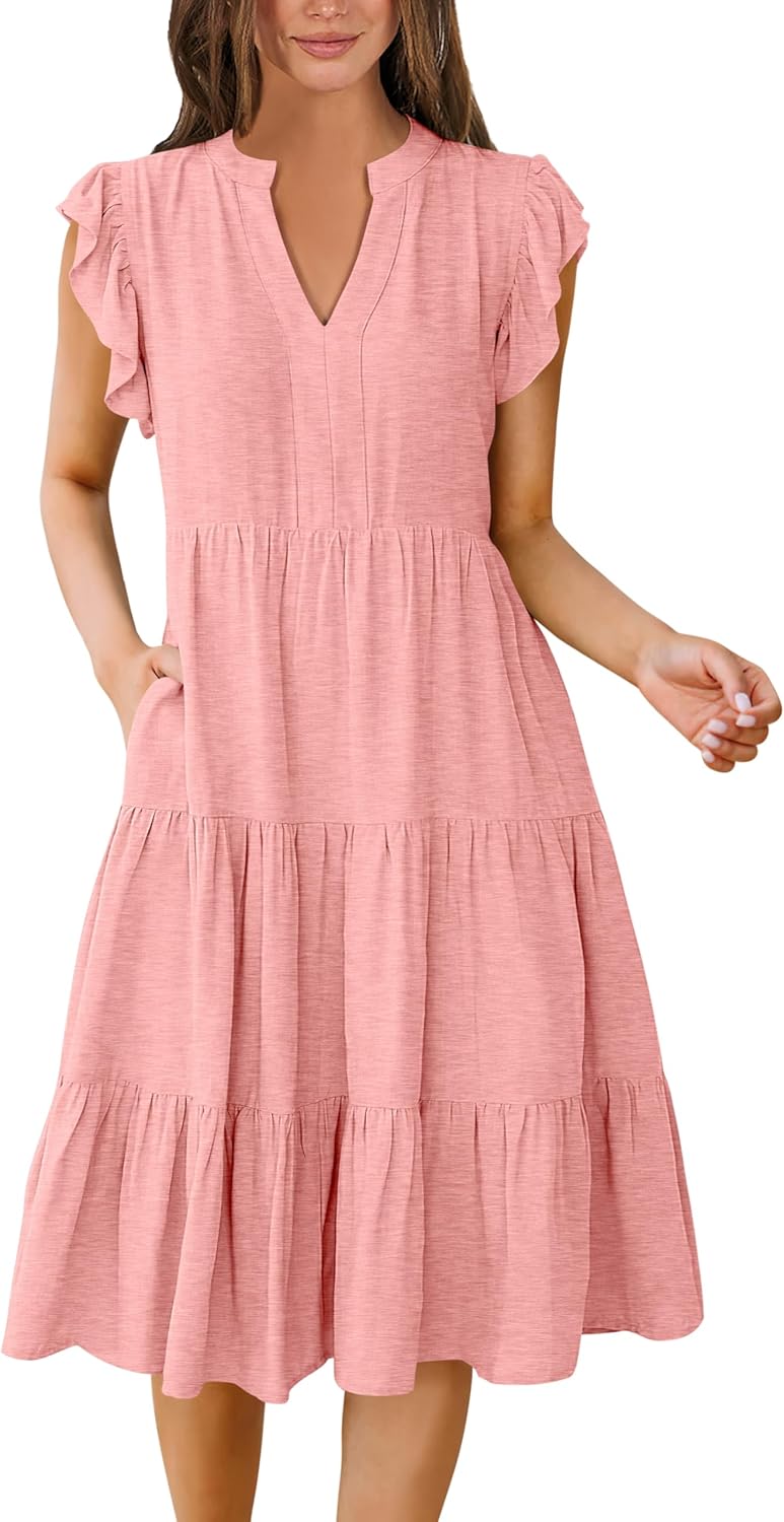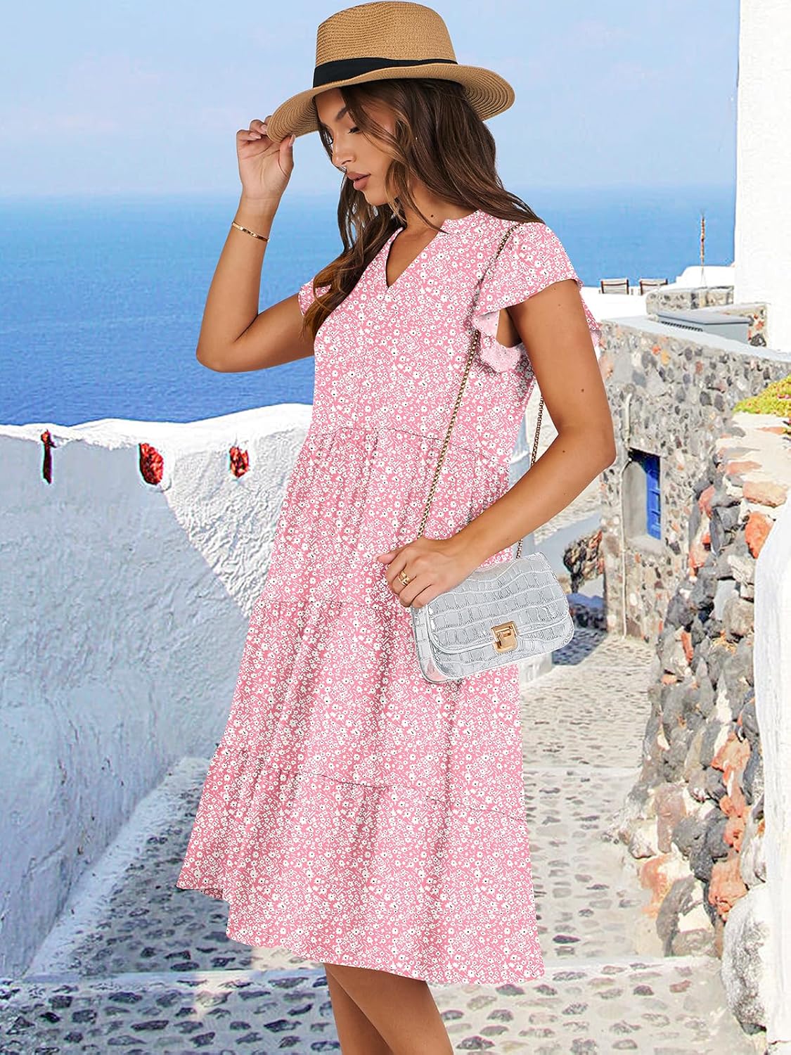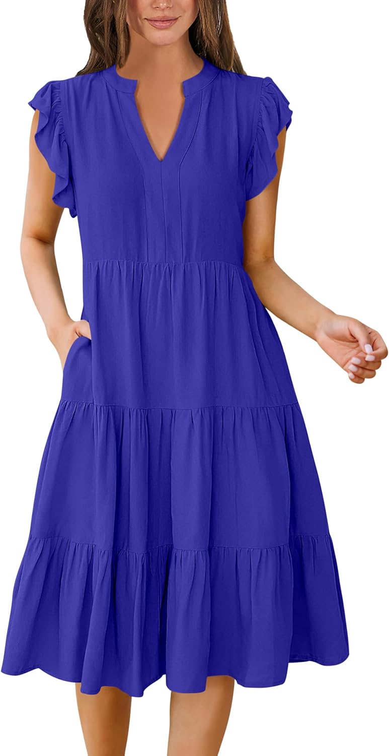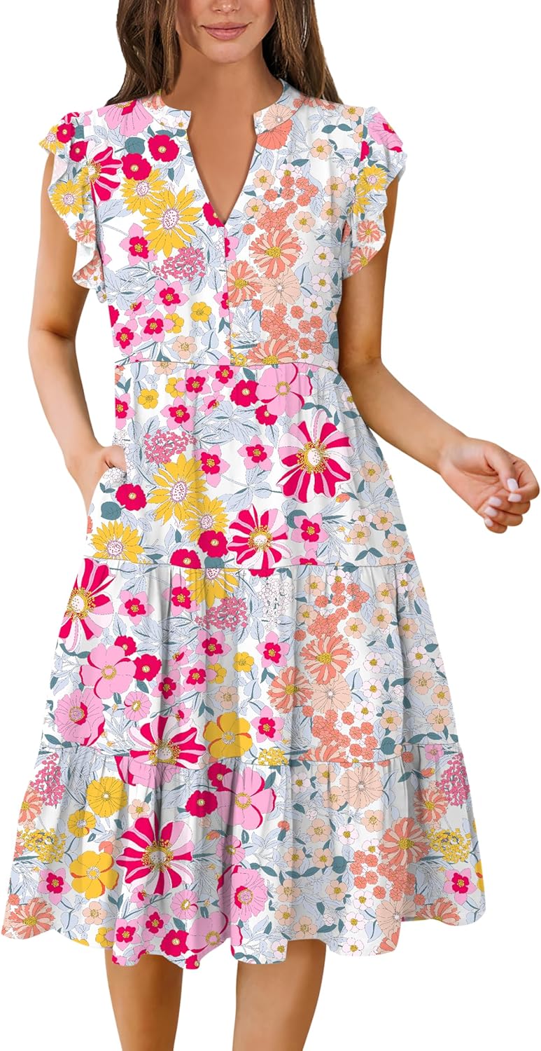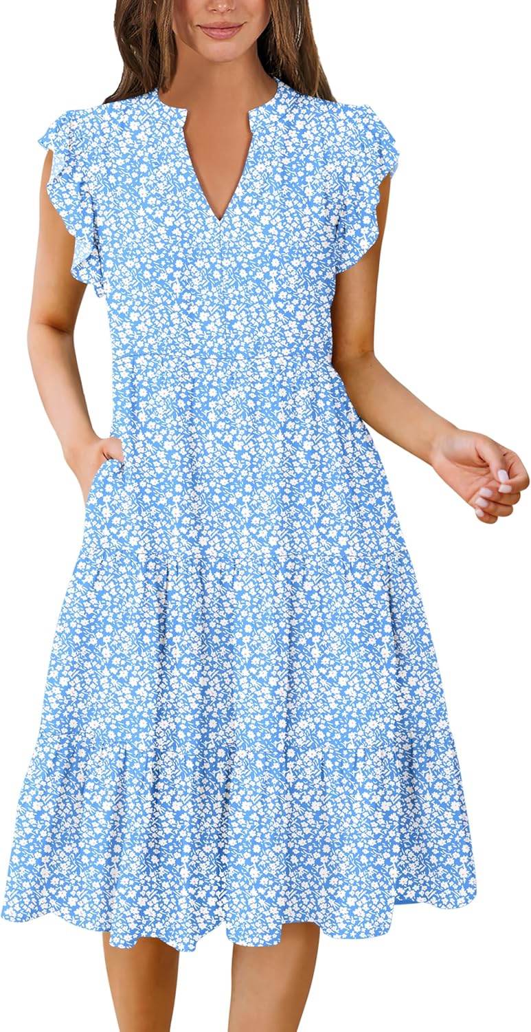 - Features - Adorned with charming ruffled sleeves, V neck, pleated, solid color, and floral printed tiered boho midi dress, this summer dress is a perfect choice for daily wear, school, work, office, party, casual outings, beach, travel.