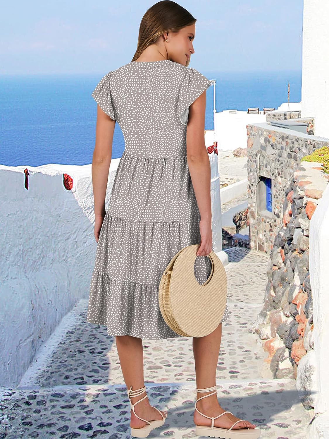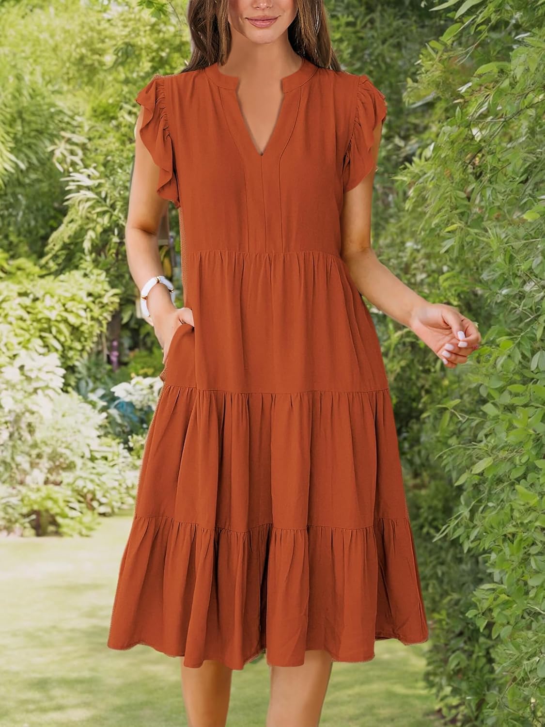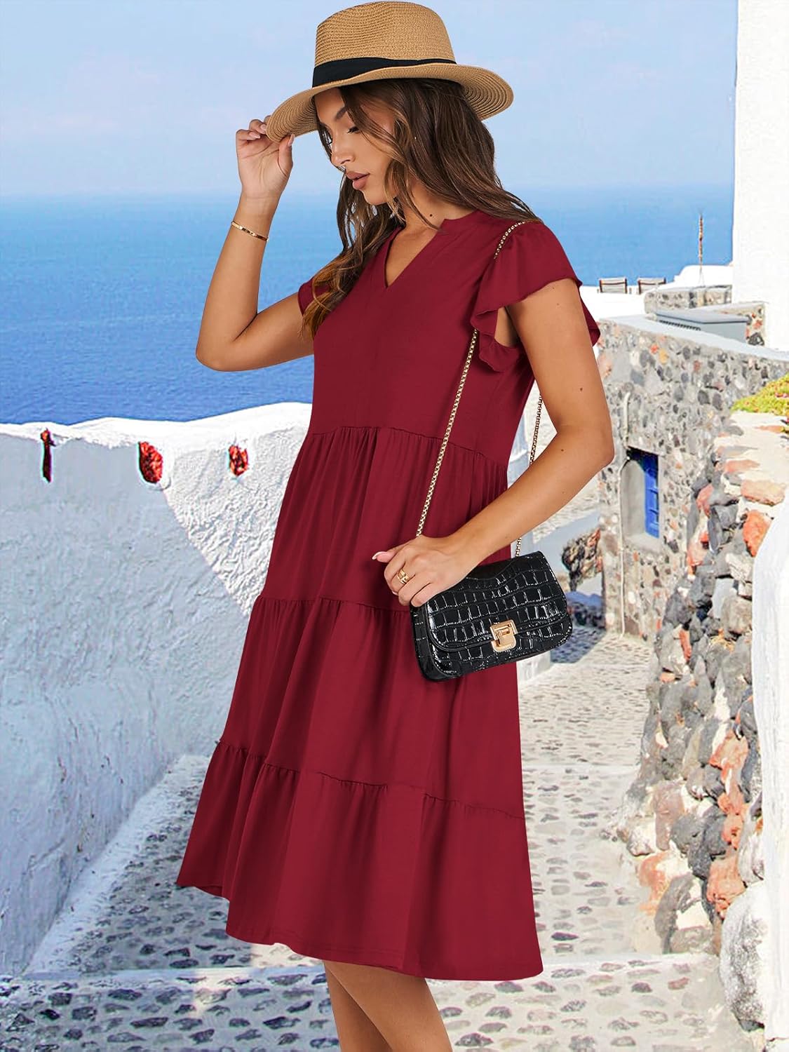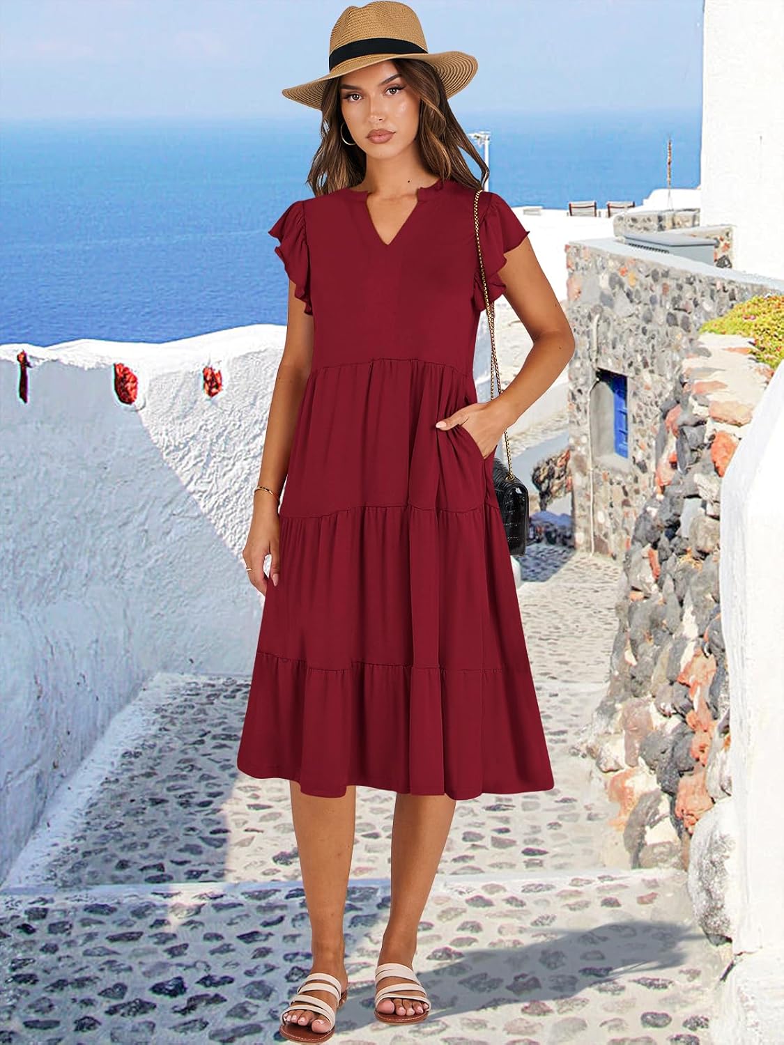 - Features - Adorned with charming ruffled sleeves, V neck, pleated, solid color, and floral printed tiered boho midi dress, this summer dress is a perfect choice for daily wear, school, work, office, party, casual outings, beach, travel.