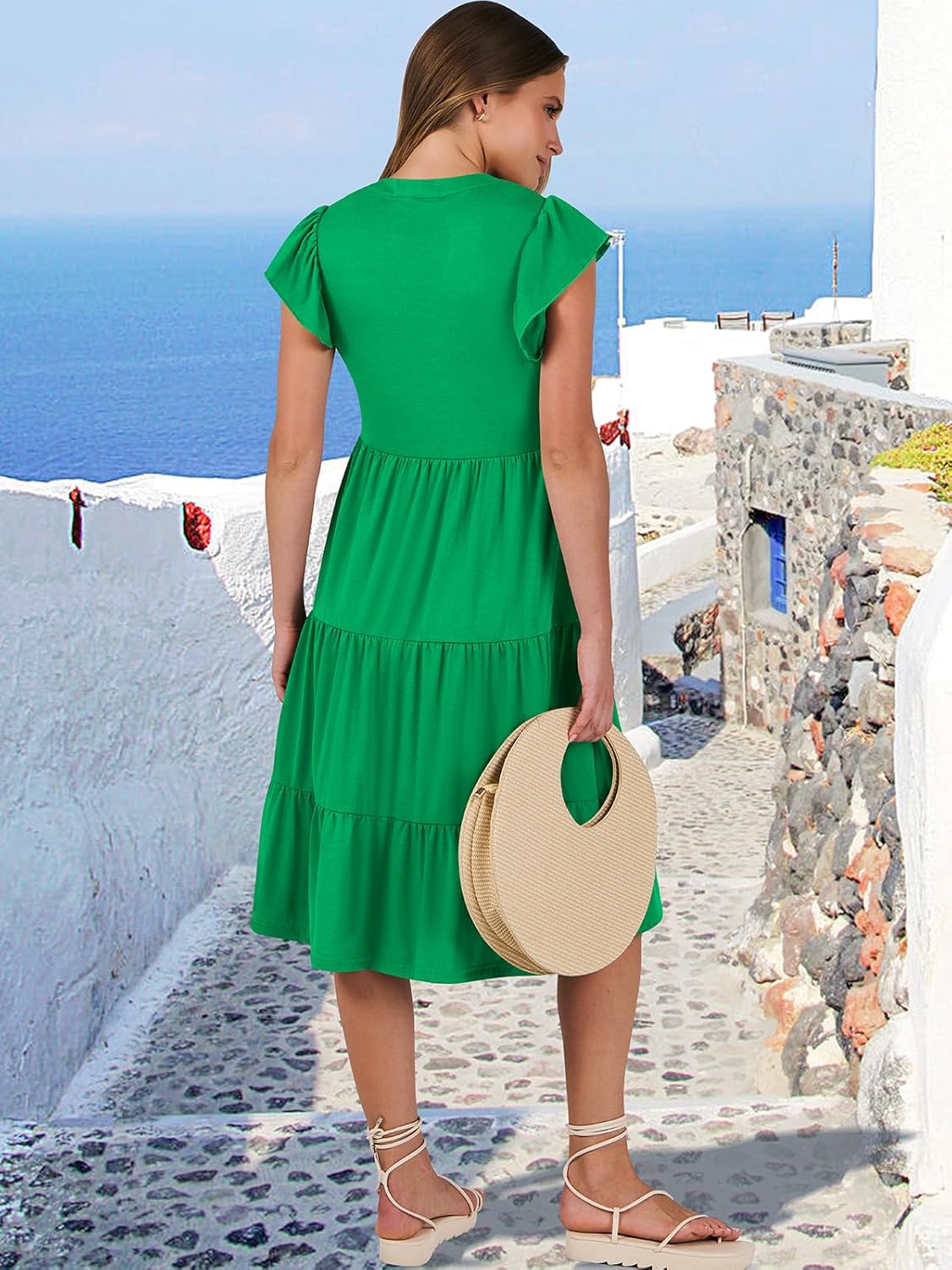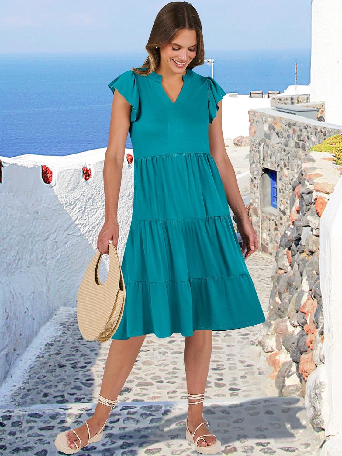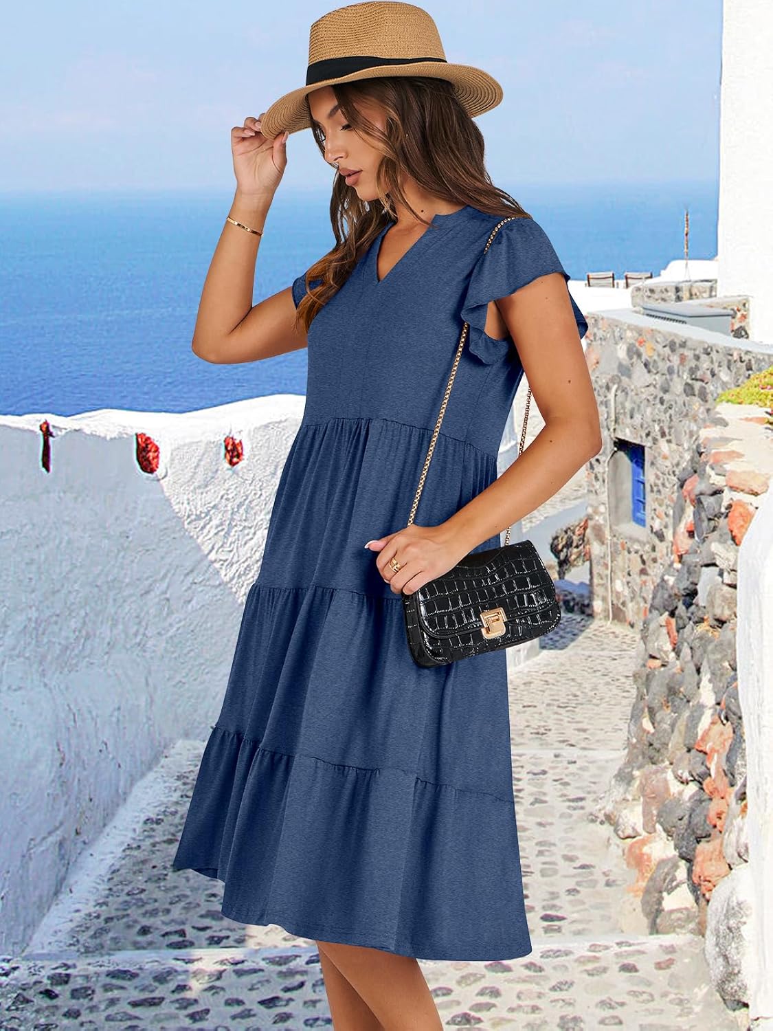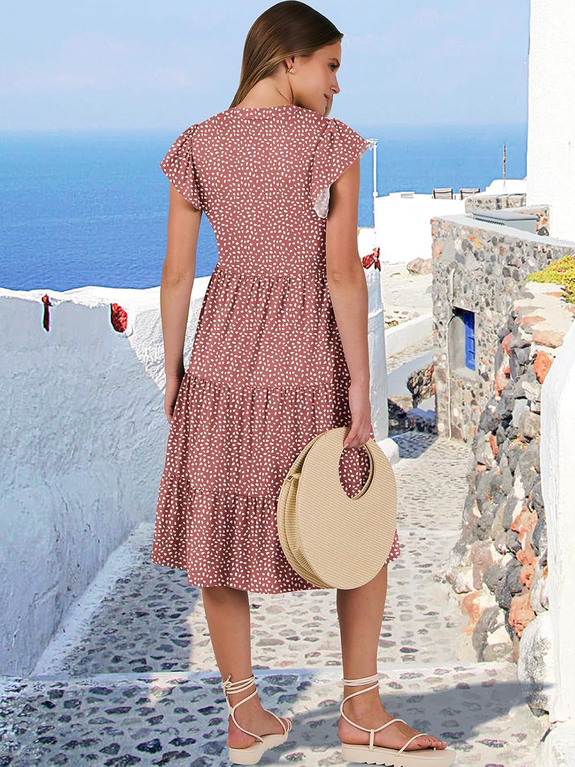 - Features - Adorned with charming ruffled sleeves, V neck, pleated, solid color, and floral printed tiered boho midi dress, this summer dress is a perfect choice for daily wear, school, work, office, party, casual outings, beach, travel.