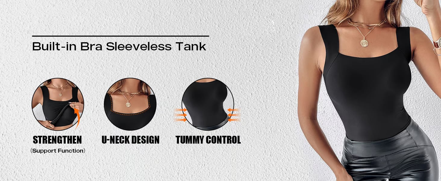 U Neck Shapewear Built-in Bra Tank makes you feel supported, confident, and comfortable without a bra every day!