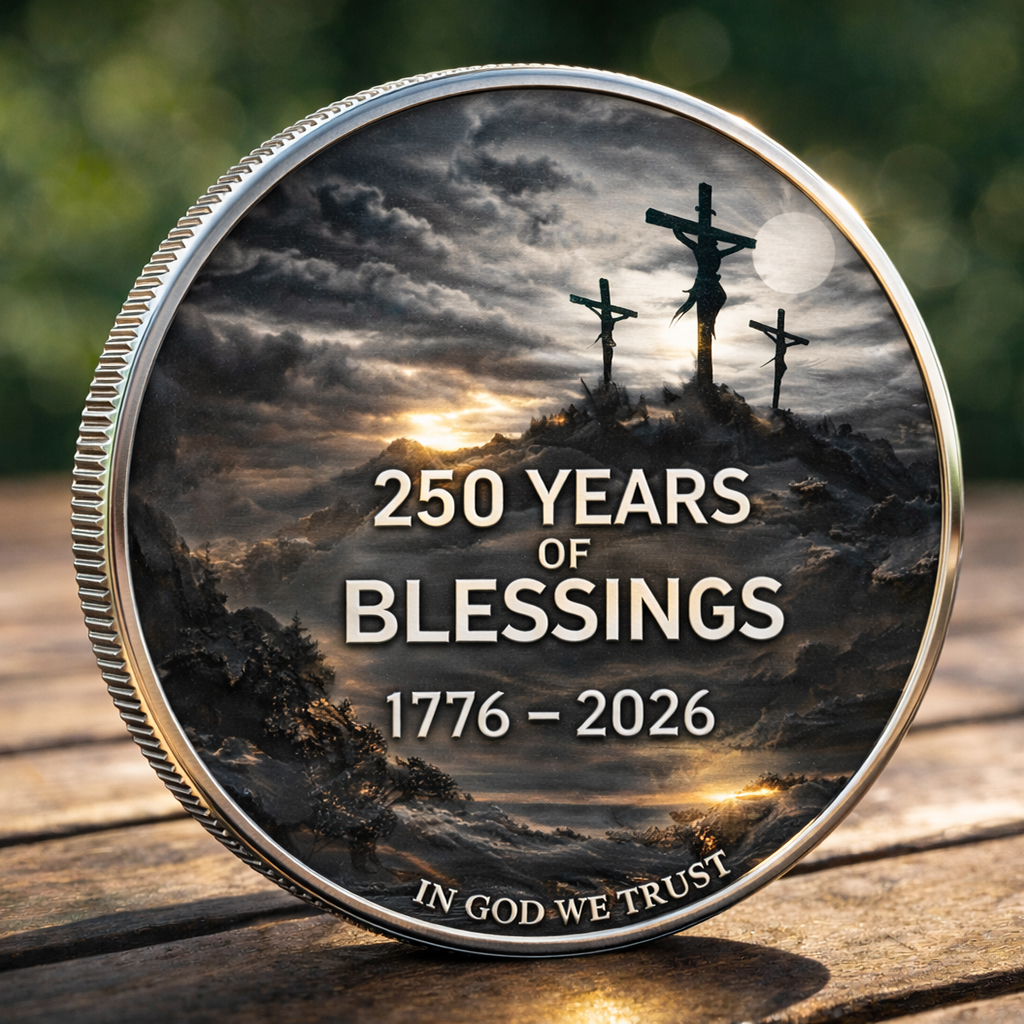 Whether displayed in a collection, carried as a challenge coin, or given as a heartfelt gift, this commemorative coin represents faith, freedom, and gratitude for 250 years of blessings.